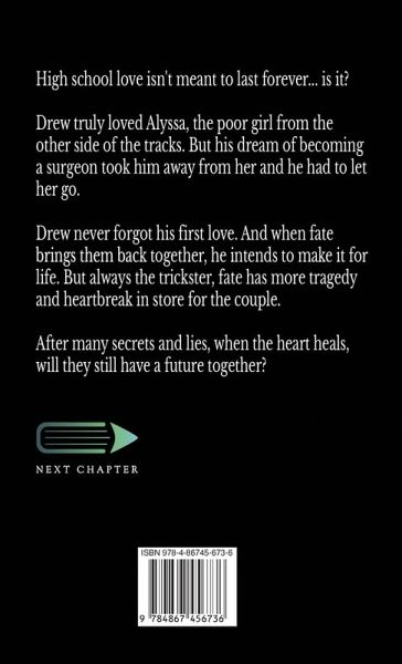 High school love isn't meant to last forever... is it? Drew truly loved Alyssa, the poor girl from the other side of the tracks. But his dream of becoming a surgeon took him away from her and he had to let her go. Drew never forgot his first love. And when fate brings them back together, he intends to make it for life. But always the trickster, fate has more tragedy and heartbreak in store for the couple. After many secrets and lies, when the heart heals, will they still have a future together?