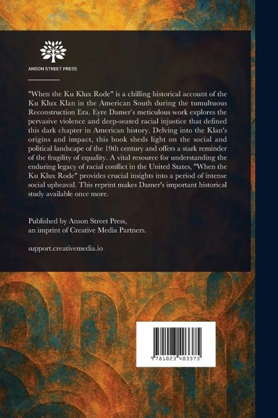 "When the Ku Klux Rode" is a chilling historical account of the Ku Klux Klan in the American South during the tumultuous Reconstruction Era. Eyre Damer's meticulous work explores the pervasive violence and deep-seated racial injustice that defined this dark chapter in American history. Delving into the Klan's origins and impact, this book sheds light on the social and political landscape of the 19th century and offers a stark reminder of the fragility of equality. A vital resource for understanding the enduring legacy of racial conflict in the United States, "When the Ku Klux Rode" provides crucial insights into a period of intense social upheaval. This reprint makes Damer's important historical study available once more. This work has been selected by scholars as being culturally important, and is part of the knowledge base of civilization as we know it. This work is in the public domain in the United States of America, and possibly other nations. Within the United States, you may freely copy and distribute this work, as no entity (individual or corporate) has a copyright on the body of the work. Scholars believe, and we concur, that this work is important enough to be preserved, reproduced, and made generally available to the public. We appreciate your support of the preservation process, and thank you for being an important part of keeping this knowledge alive and relevant.