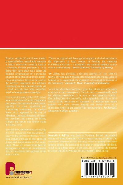 Previous studies of revival have tended to approach these remarkable moments in history from either a strictly local or a sweeping national perspective. In so doing they have dealt with either the detailed circumstances of a particular situation or the broader course of events. These approaches, however, have given the incorrect impression that religious awakening are uniform movements. As a result revivals have been misunderstood as homogeneous campaigns. This is the first study of the 1859 revival from a regional level in a comprehensive manner. It examines this movement, arguably the most significant and far-reaching awakening in modern times, as it appeared in the city of Aberdeen, the rural hinterland of north-east Scotland, and among the fishing villages and towns that stretch along the Moray Firth. It reveals how, far from being unvarying, the 1859 revival was richly diverse. It uncovers the important influence that local contexts brought to bear upon the timing and manifestation of this awakening. Above all, it has established the heterogeneous nature of simultaneous revival movements that appeared in the same vicinity.