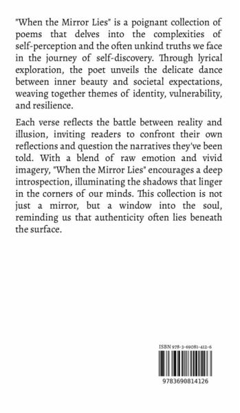 "When the Mirror Lies" is a poignant collection of poems that delves into the complexities of self-perception and the often unkind truths we face in the journey of self-discovery. Through lyrical exploration, the poet unveils the delicate dance between inner beauty and societal expectations, weaving together themes of identity, vulnerability, and resilience. Each verse reflects the battle between reality and illusion, inviting readers to confront their own reflections and question the narratives they've been told. With a blend of raw emotion and vivid imagery, "When the Mirror Lies" encourages a deep introspection, illuminating the shadows that linger in the corners of our minds. This collection is not just a mirror, but a window into the soul, reminding us that authenticity often lies beneath the surface.