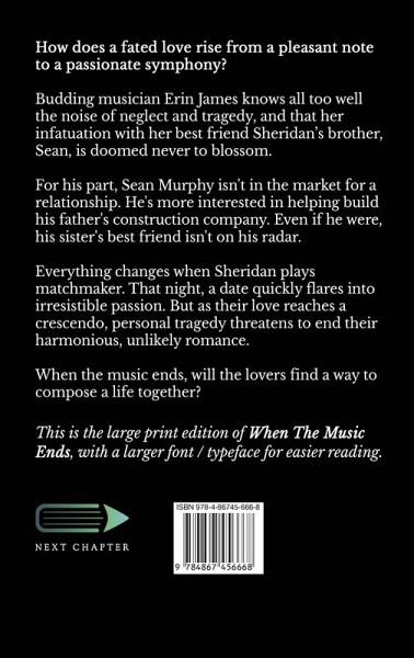 How does a fated love rise from a pleasant note to a passionate symphony? Budding musician Erin James knows all too well the noise of neglect and tragedy, and that her infatuation with her best friend Sheridan's brother, Sean, is doomed never to blossom. For his part, Sean Murphy isn't in the market for a relationship. He's more interested in helping build his father's construction company. Even if he were, his sister's best friend isn't on his radar. Everything changes when Sheridan plays matchmaker. That night, a date quickly flares into irresistible passion. But as their love reaches a crescendo, personal tragedy threatens to end their harmonious, unlikely romance. When the music ends, will the lovers find a way to compose a life together? This is the large print edition of When The Music Ends, with a larger font / typeface for easier reading.¿