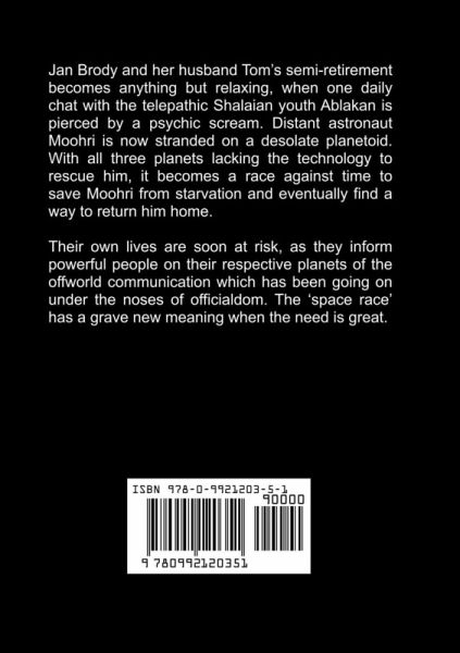 Jan Brody and her husband Tom's semi-retirement becomes anything but relaxing, when one daily chat with the telepathic Shalaian youth Ablakan is pierced by a psychic scream. Distant astronaut Moohri is now stranded on a desolate planetoid. With all three planets lacking the technology to rescue him, it becomes a race against time to save Moohri from starvation and eventually find a way to return him home. Their own lives are soon at risk, as they inform powerful people on their respective planets of the offworld communication which has been going on under the noses of officialdom. The 'space race' has a grave new meaning when the need is great.