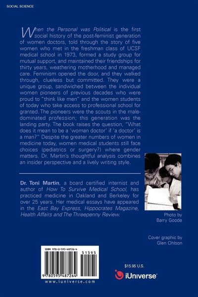 When the Personal was Political is the first social history of the post-feminist generation of women doctors, told through the story of five women who met in the freshman class of UCSF medical school in 1973, formed a study group for mutual support, and maintained their friendships for thirty years, weathering motherhood and managed care. Feminism opened the door, and they walked through, clueless but committed. They were a unique group, sandwiched between the individual women pioneers of previous decades who were proud to "think like men" and the women students of today who take access to professional school for granted. The pioneers were the scouts in the male-dominated profession; this generation was the landing party. The book raises the question, "What does it mean to be a 'woman doctor' if 'a doctor' is a man?" Despite the greater numbers of women in medicine today, women medical students still face choices (pediatrics or surgery?) where gender matters. Dr. Martin's thoughtful analysis combines an insider perspective and a lively writing style.