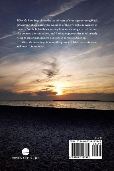 When the Rain Stops chronicles the life story of a courageous young Black girl coming of age during the evolution of the civil rights movement in the rural South. It details her journey from overcoming external barriers like poverty, discrimination, and limited opportunities to ultimately rising to senior management positions in corporate America. When the Rain Stops is an uplifting story of faith, determination, and hope. It is her story.