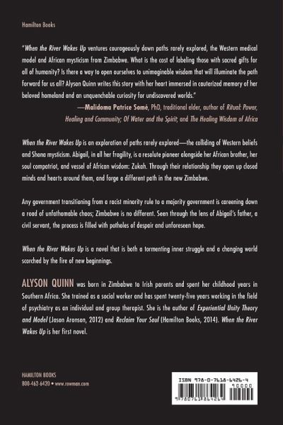 Alyson Quinn was born in Zimbabwe to Irish parents and spent her childhood years in Southern Africa. She trained as a social worker and has spent twenty-five years working in the field of psychiatry as an individual and group therapist. She is the author of Experiential Unity Theory and Model (Jason Aronson, 2012) and Reclaim Your Soul (Hamilton Books, 2014). When the River Wakes Up is her first novel.