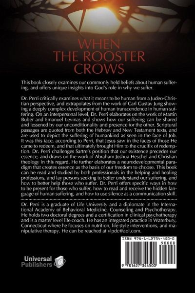 This book closely examines our commonly held beliefs about human suffering, and offers unique insights into God's role in why we suffer. Dr. Perri critically examines what it means to be human from a Judeo-Christian perspective, and extrapolates from the work of Carl Gustav Jung showing a deeply complex development of human transcendence in human suffering. On an interpersonal level, Dr. Perri elaborates on the work of Martin Buber and Emanuel Levinas and shows how our suffering can be shared and lessened by our unconditionality and presence for the other. Scriptural passages are quoted from both the Hebrew and New Testament texts, and are used to depict the suffering of humankind as seen in the face of Job. It was this face, according to Perri, that Jesus saw in the faces of those He came to redeem, and that ultimately brought Him to the crucifix of redemption. Dr. Perri challenges Sartre's position that our existence precedes our essence, and draws on the work of Abraham Joshua Heschel and Christian theology in this regard. He further elaborates a neurodevelopmental paradigm that creates essence as the basis of our freedom to choose. This book can be read and studied by both professionals in the helping and healing professions, and lay persons seeking to better understand our suffering, and how to better help those who suffer. Dr. Perri offers specific ways in how to be present for those who suffer, how to read and receive the hidden language of human suffering, and how to use silence as a communication skill.