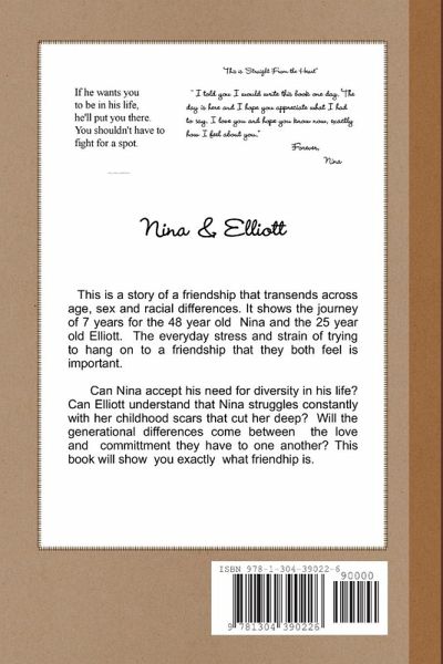 The story of a 7 year friendship that crosses age, sex and racial differences. It shows the journey of Nina, a 48 year old female and Elliott, a 25 year old male. Will it be the age difference, or the racial differences that threaten to destroy their friendship?