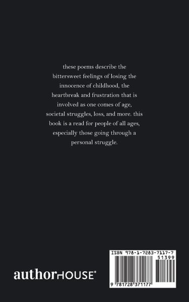these poems describe the bittersweet feelings of losing the innocence of childhood, the heartbreak and frustration that is involved as one comes of age, societal struggles, and more. this collection highlights that there are some good days and some bad. a read for people of all ages, especially those going through a personal struggle.