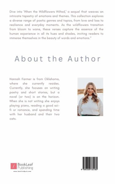 Dive into 'When the Wildflowers Wilted,' a sequel that weaves an intricate tapestry of emotions and themes. This collection explores a diverse range of poetic genres and topics, from love and loss to resilience and everyday moments. As the wildflowers transition from bloom to wane, these verses capture the essence of the human experience in all its hues and shades, inviting readers to immerse themselves in the beauty of words and emotions."