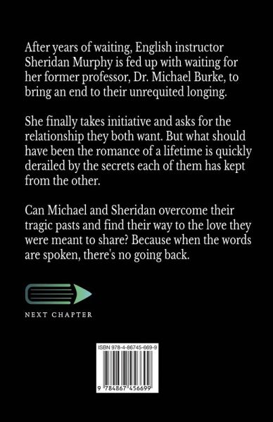 After years of waiting, English instructor Sheridan Murphy is fed up with waiting for her former professor, Dr. Michael Burke, to bring an end to their unrequited longing. She finally takes initiative and asks for the relationship they both want. But what should have been the romance of a lifetime is quickly derailed by the secrets each of them has kept from the other. Can Michael and Sheridan overcome their tragic pasts and find their way to the love they were meant to share? Because when the words are spoken, there's no going back. This book contains graphic sex and is not suitable for readers under the age of 18.