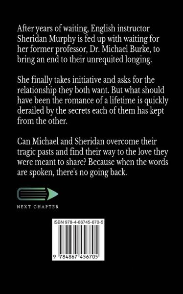 After years of waiting, English instructor Sheridan Murphy is fed up with waiting for her former professor, Dr. Michael Burke, to bring an end to their unrequited longing. She finally takes initiative and asks for the relationship they both want. But what should have been the romance of a lifetime is quickly derailed by the secrets each of them has kept from the other. Can Michael and Sheridan overcome their tragic pasts and find their way to the love they were meant to share? Because when the words are spoken, there's no going back. This book contains graphic sex and is not suitable for readers under the age of 18.