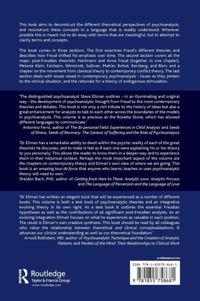 This book aims to deconstruct the different theoretical perspectives of psychoanalysis, and reconstruct these concepts in a language that is readily understood. Wherever possible this is meant not to do away with terms that are meaningful, but to attempt to clarify terms and concepts. The book comes in three sections. The first examines Freud's different theories and describes how Freud shifted his emphasis over time. The second section covers all the major post-Freudian theorists: Hartmann and Anna Freud (together in one chapter), Melanie Klein, Fairbairn, Winnicott, Sullivan, Mahler, Kohut, Kernberg, and Bion; and a chapter on the movement from classical theory to contemporary conflict theory. The last section deals with issues raised in contemporary psychoanalysis - issues as they pertain to the clinical situation, and the rationale for a theory of endogenous stimulation.