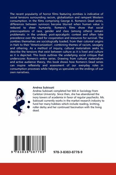 The recent popularity of horror films featuring zombies is indicative of social tensions surrounding racism, globalization and rampant Western consumption. In the films comprising George A. Romero's Dead series, differences between survivors become blurred when human value is reduced to sheer humanity. Romero's films show that social preoccupations of race, gender and class (among others) remain problematic in the undead, post-apocalyptic context and often take precedence over the need for cooperation and resources for survival. The zombies themselves are sociologically loaded; from their colonial origins in Haiti to their "Americanization", combining themes of racism, savagery and othering. As a method of inquiry, cultural materialism seeks to describe the tensions that exist between culture as it is lived and culture as it is depicted. This book outlines the underlying social critique that underscores Romero's entire series. Drawing from cultural materialism and active audiencetheory, this book shows how Romero's Dead series can inspire reflexivity and assessment of our everyday roles in consumption processes while helping us speculate on the endings of our own narratives.