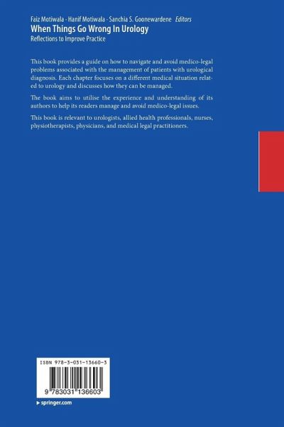 This book provides a guide on how to navigate and avoid medico-legal problems associated with the management of patients with urological diagnosis. Each chapter focuses on a different medical situation related to urology and discusses how they can be managed.