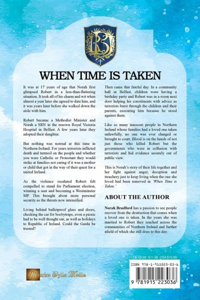 At 17 years of age, Norah first glimpsed Robert in a less than flattering impression. It took almost a year and all his charm and wit before she agreed to date him. And it was years later before she walked down the aisle with him. Robert became a Methodist Minister and Norah an SRN in the renowned Royal Victoria Hospital Belfast. A few years after they married, they adopted their daughter. But nothing was normal at this time in Northern Ireland. For years, terrorists had inflicted death and turmoil on the people. Whether you were Catholic or Protestant, they would strike at families, not caring if it was a mother or child or whoever got in the way of their quest for a united Ireland. As the violence escalated, Robert felt compelled to stand for Parliament. Winning a seat, he became a Westminster MP, requiring more personal security as the threats intensified. Robert and Norah lived behind bulletproof glass and doors, checking the car for boobytraps; even a picnic had to be well thought out. As for holidays to the Republic of Ireland - could the Garda be trusted? Then came that fateful day - in a community hall in Belfast. Children were having a birthday party; Robert was in a room next door helping his constituents with advice. Terrorists burst through the children and their parents, executing him because he stood against their belief. Like so many innocent people in Northern Ireland whose families had a loved one taken unlawfully, no one was ever charged or brought to court. Blood is on the hands of not just those who killed Robert, but the governments who were in collusion with terrorists and hid evidence securely out of public view.