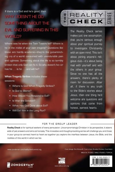 The Reality Check series makes just one assumption: that you're serious enough about your spiritual journey to investigate Christianity with an open mind. This isn't about joining anyone's religious club--it's about being real with yourself and with the others in your group. Since no one has all the answers, there's plenty of room for discussion. After all, if there is any truth to the Bible's stories about Jesus, then one thing he'd welcome are questions and opinions that come from honest, earnest hearts. If there is a God and he's good, then why doesn't he do something about the evil and suffering in this world? Where was he when the Twin Towers fell? Where is he in the midst of your own tragedy? Questions like these are hardly academic--they're the gut-wrenching cry of a world consumed with unendurable pain and ugliness. Something about this life is so terribly broken that only God can fix it. So why doesn't he--or has he . . . is he . . . and will he? When Tragedy Strikes includes these sessions: Where Is God When Tragedy Strikes? Is God to Blame? How Should You Respond to Evil? Is War the Solution? What Has God Done About Evil? Will Evil Win in the Long Run? For the Group Leader Reality Check is for spiritual seekers of every persuasion. Uncompromisingly Christian in its perspective, it steers wide of pat answers and aims at honesty. This innovative and thought-provoking series will challenge you and those in your group to connect heart to heart as together you explore the interface between Jesus, the Bible, and the realities of this world in which we live.