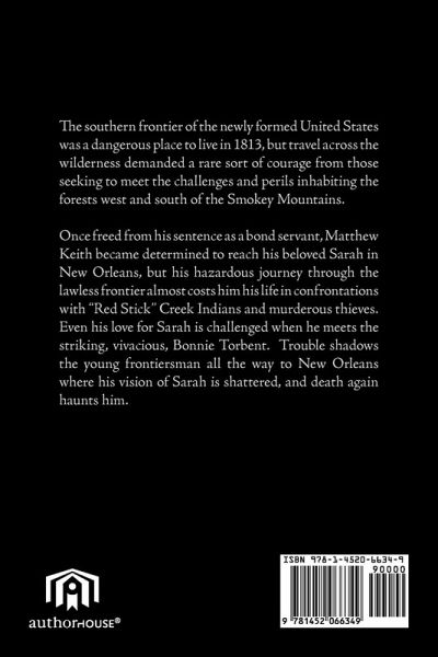 The southern frontier of the newly formed United States was a dangerous place to live in 1813, but travel across the wilderness demanded a rare sort of courage from those seeking to meet the challenges and perils inhabiting the forests west and south of the Smokey Mountains. This is the story of one young man's quest to find the girl he loved, and his violent, deadly journey.