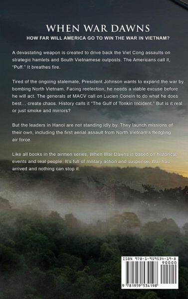 How far will America go to win the Vietnam War? Torn by terrible loss, an American pilot finds distraction when he develops a new weapon that could change the war in Vietnam. As it appears in the night sky, the terrified Viet Cong call it "dragon." Will it be enough or is it already too late? After enemy torpedo boats attack the US Destroyer Maddox in the Gulf of Tonkin, President Johnson decides to expand the war and bomb North Vietnam. When a second attack occurs, the US Congress gives the president the power to declare all-out war against the communists. But are the attacks real or just smoke and mirrors? Under the direction of the CIA, the secret war in Laos gains momentum as Montagnard tribesmen and SOG teams fight to cut off the Ho Chi Minh Trail and deny the Viet Cong and NVA the weapons and supplies they need to win the war in South Vietnam. Using an odd mix of older warplanes and modern jet fighters, Operation Barrel Roll brings American airpower to the struggle in the Laotian mountains. As the Laotian military loses control over The Plain of Jars to the Pathet Lao, the CIA turns a blind eye when an American pilot is coerced into transporting opium grown by the hill tribes as their only source of income. Run by the Corsican mob in Saigon, it's a treacherous tangle of deceit that will cost thousands of American lives. Like all the books in the airmen series, When War Dawns is based on historical events and real people. It's full of military action and suspense. The Vietnam War has arrived and nothing can stop it.