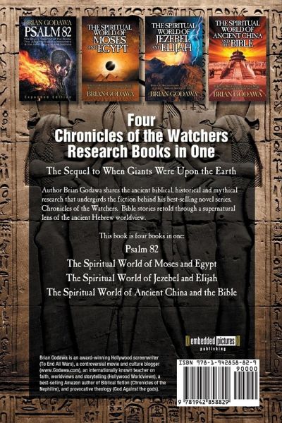 The Sequel to the Best-Selling Book, When Giants Were Upon the Earth For those who want serious study of the topics of the Unseen Realm in the Bible: ¿ The divine council of the gods. ¿ The authority of the Watchers, Sons of God. ¿ Territorial spirits and the inheritance of the nations. ¿ Angels and demons, principalities and powers, spiritual warfare. ¿ Host of heaven, Shining Ones and the stars. ¿ Leviathan the sea dragon of chaos vs. creation. ¿ The gods of Canaan and Jezebel vs. Yahweh and Elijah. ¿ Child sacrifice in Israel and the cult of the dead. ¿ The gods of Egypt and Pharaoh vs. Yahweh and Moses. ¿ The truth about the ten plagues and the Exodus. ¿ The connection between ancient China, the Tower of Babel and the Bible. ¿ Dragons and the Babylonian Magi in China. ¿ The cosmic spiritual war between the Seed of the Serpent and the Seed of Messiah. Box set of four Chronicles of the Watchers research books in one volume: Psalm 82 The Spiritual World of Moses and Egypt The Spiritual World of Jezebel and Elijah The Spiritual World of Ancient China and the Bible Respected Christian author Brian Godawa shares the Biblical, ancient historical and mythical research that undergirds the fiction behind his best-selling novel series, Chronicles of the Watchers, Bible stories retold through a supernatural lens of the ancient Hebrew worldview.