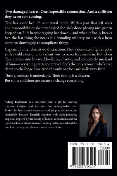Two damaged hearts. One impossible connection. And a collision they never saw coming. Tara has spent her life in survival mode. With a past that left scars and responsibilities she never asked for, she's done playing nice just to keep afloat. Life keeps dragging her down-and when it finally breaks her, the last thing she needs is a brooding military man with a hero complex showing up to complicate things. Captain Hunter doesn't do distractions. He's a decorated fighter pilot with a cold exterior and a silent vow to never let anyone in. But when Tara crashes into his world-fierce, chaotic, and completely unafraid of him-everything starts to unravel. She's the only woman who's ever dared to challenge him. And the only one he can't walk away from. Their chemistry is undeniable. Their timing is a disaster. But some collisions are meant to change everything.