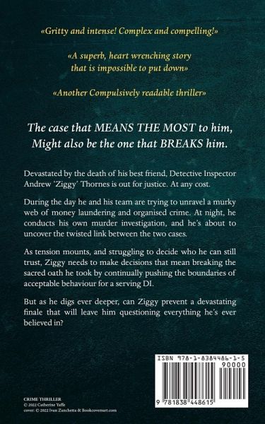 The case that MEANS THE MOST to himMight also be the one that BREAKS HIM Devastated by the death of his best friend, Detective Inspector Andrew 'Ziggy' Thornes is out for justice. At any cost. During the day he and his team are trying to unravel a murky web of money laundering and organised crime. At night, he conducts his own murder investigation, and he's about to uncover the twisted link between the two cases. As tension mounts, and struggling to decide who he can still trust, Ziggy needs to make decisions that mean breaking the sacred oath he took by continually pushing the boundaries of acceptable behaviour for a serving DI. But as he digs ever deeper, can Ziggy prevent a devastating finale that will leave him questioning everything he's ever believed in? Join Ziggy on his latest case that readers are calling an exhilarating and unmissable read.