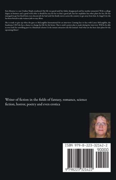 Fara Monroe is a rare Undine/Slyph crossbreed. Her life was good until her father disappeared and her mother remarried. With a college degree in business and a good work ethic it should be easy for her to find a good job, but her stepfather has other plans for her. He has managed to get her fired from every decent job she had until she finally moves across the country to get away from him. In Angel City she has been forced to take waitress jobs to stay afloat. She is ready to give up when she goes to McLaughlin International for an interview. Coming face to face with Lance McLaughlin, the handsome CEO she has a chance to change her life for the better. That is until a power play is made during her interview. Will he be able to over look her unwilling part in a blackmail scheme? Is the instant attraction she felt mutual? And what are the bear clans plans for the upcoming Moot?