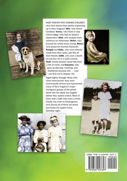 Meet twenty-five former children who have shared their stories of growing up in New England: Ellie, who hated breakfast; Sonny, who liked to skip school; Lucy, who had an abusive stepmother; Shirl, who soaped store windows on Halloween; Helen, who proved her whole town wrong; Butch, who posed for Norman Rockwell; Pumpie and Bella, who wore dresses made from flour sacks, just like all their friends; Edith, who won a bottle of cod liver oil in a radio contest; Walt, whose teacher saved him from a life of crime; and Rosanna, who gave up dancing, smoking, and boyfriends because she . . . (you can find out in chapter 10). Aged eighty through ninety-nine when interviewed, they were economically diverse and represented many of New England's major immigrant groups of the period. Some did not speak any English before they started school. Most of them took a bath only once a week. Hardly any went to kindergarten. And almost all of them ate beans and franks for supper every Saturday night.