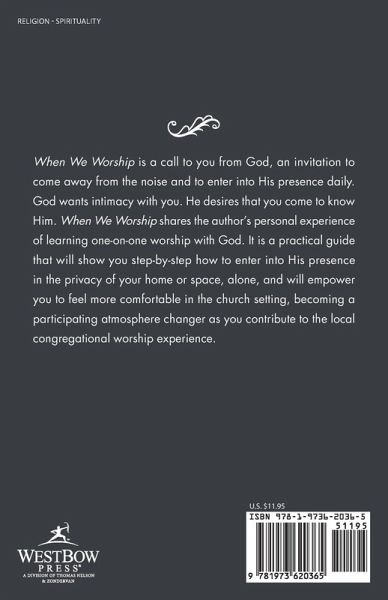 When We Worship is a call to you from God, an invitation to come away from the noise and to enter into His presence daily. God wants intimacy with you. He desires that you come to know Him. When We Worship shares the author's personal experience of learning one-on-one worship with God. It is a practical guide that will show you step-by-step how to enter into His presence in the privacy of your home or space, alone, and will empower you to feel more comfortable in the church setting, becoming a participating atmosphere changer as you contribute to the local congregational worship experience.