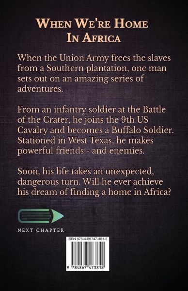 When the Union Army frees the slaves from a Southern plantation, one man sets out on an amazing series of adventures. From an infantry soldier at the Battle of the Crater, he joins the 9th US Cavalry and becomes a Buffalo Soldier. Stationed in West Texas, he makes powerful friends - and enemies. Soon, his life takes an unexpected, dangerous turn. Will he ever achieve his dream of finding a home in Africa?