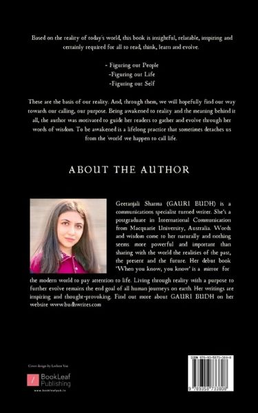 ""Based on the reality of today's world, this book is insightful, relatable, inspiring and certainly required for all to read, think, learn and evolve. - Figuring out People -Figuring out Life -Figuring out Self These are the basis of our reality. And, through them, we will hopefully find our way towards our calling, our purpose. Being awakened to reality and the meaning behind it all, the author was motivated to guide her readers to gather and evolve through her words of wisdom. To be awakened is a lifelong practice that sometimes detaches us from the 'world' we happen to call life. ""