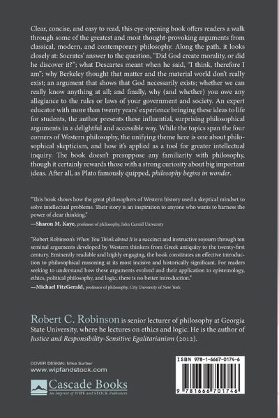 Clear, concise, and easy to read, this eye-opening book offers readers a walk through some of the greatest and most thought-provoking arguments from classical, modern, and contemporary philosophy. Along the path, it looks closely at: Socrates' answer to the question, ""Did God create morality, or did he discover it?""; what Descartes meant when he said, ""I think, therefore I am""; why Berkeley thought that matter and the material world don't really exist; an argument that shows that God necessarily exists; whether we can really know anything at all; and finally, why (and whether) you owe any allegiance to the rules or laws of your government and society. An expert educator with more than twenty years' experience bringing these ideas to life for students, the author presents these influential, surprising philosophical arguments in a delightful and accessible way. While the topics span the four corners of western philosophy, the unifying theme here is one about philosophical skepticism, and how it's applied as a tool for greater intellectual inquiry. The book doesn't presuppose any familiarity with philosophy, though it certainly rewards those with a strong curiosity about big important ideas. After all, as Plato famously quipped, philosophy begins in wonder.