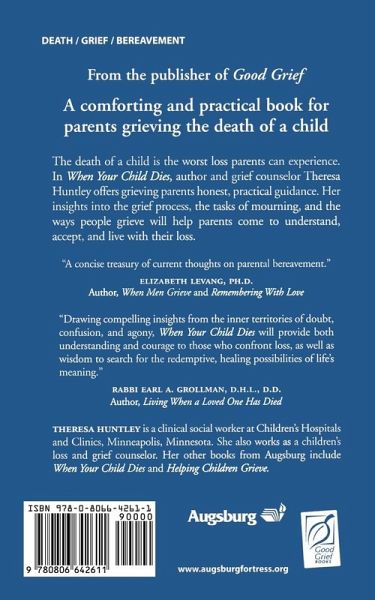 No parent wants to face the loss of a child. Drawing on her experience as a counselor, Huntley addresses the magnitude of this loss and its immediate and future impact. She also discusses the difficult task of mourning, different ways of grieving, and how a child's death can affect parents' other relationships.