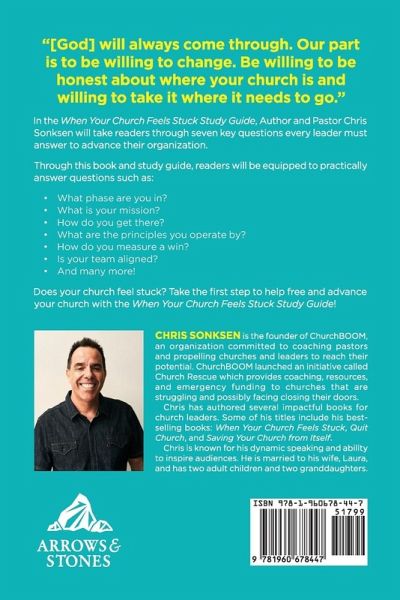 "[God] will always come through. Our part is to be willing to change. Be willing to be honest about where your church is and willing to take it where it needs to go." In the When Your Church Feels Stuck Study Guide, Author and Pastor Chris Sonksen will take readers through seven key questions every leader must answer to advance their organization. Through this book and study guide, readers will be equipped to practically answer questions such as:What phase are you in? What is your mission? How do you get there? What are the principles you operate by? How do you measure a win? Is your team aligned? And many more! Does your church feel stuck? Take the first step to help free and advance your church with the When Your Church Feels Stuck Study Guide!