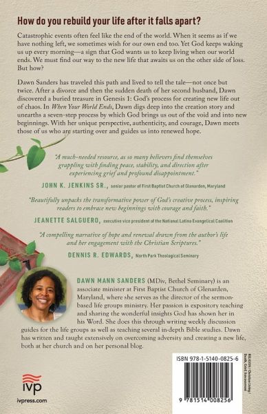 How do you rebuild your life after it falls apart? Catastrophic events often feel like the end of the world. When we feel like we have nothing left, we sometimes wish for our own end too. Yet God keeps waking us up every morning--a sign that God wants us to keep living when our world ends. We must find our way to the new life that awaits us on the other side of loss. But how? Dawn Sanders has traveled this path before and lived to tell the tale--not once but twice. After a divorce and then the sudden death of her second husband, Dawn discovered a buried treasure in Genesis 1: God's process for creating new life out of chaos. In When Your World Ends, Dawn digs deep into the creation story and unearths a seven-step process by which God brings us out of the void and into new beginnings. With her unique perspective, authenticity, and courage, Dawn meets those who are starting over and guides us into renewed hope.