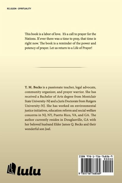 This book is a labor of love. It's a call to prayer for the Nations. If ever there was a time to pray, that time is right now. The book is a reminder of the power and potency of prayer. Let us return to a Life of Prayer!
