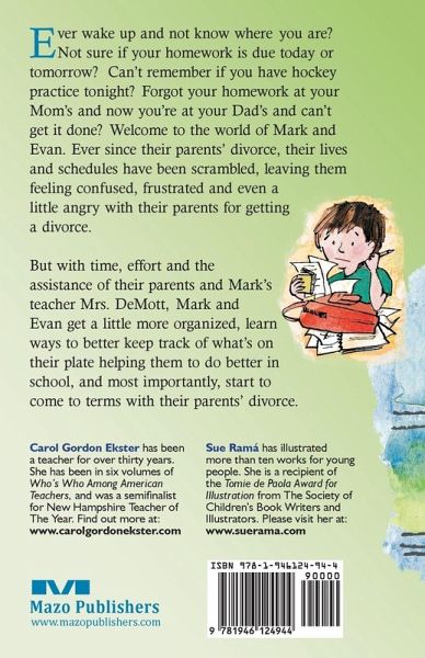"Where Am I Sleeping Tonight?" is an excellent book for elementary school-aged children who have to adjust to the new realities when their parents get divorced. The two brothers in this story, Mark and Evan, come to terms with living in a split family. They know that mom and dad have their own rules and that they run their homes differently. Mark, the older brother, decides that "for Evan's sake I will point out how lucky we are. We are loved a lot in not just one, but two homes." Mark and Evan begin to realize that accepting responsibility and cooperating can make a big difference. "Both my parents like to make sure I'm not goofing off in school." Carol Gordon Ekster, the author, helps children see that while their lives and schedules may have become scrambled, leaving them feeling confused and frustrated, that with time, effort and the assistance of those who love them, they can be successful in their new family arrangement. The messages presented in this book are appropriate for sisters, too. Teachers, counselors, and families helping children come to terms with divorce will find this uplifting story of shared custody to be a valuable resource.