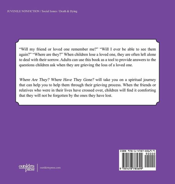 "Will my friend or loved one remember me?" "Will I ever be able to see them again?" "Where are they?" When children lose a loved one, they are often left alone to deal with their sorrow. Adults can use this book as a tool to provide answers to the questions children ask when they are grieving the loss of a loved one. Where Are They? Where Have They Gone? will take you on a spiritual journey that can help you to help them through their grieving process. When the friends or relatives who were in their lives have crossed over, children will find it comforting that they will not be forgotten by the ones they have lost.