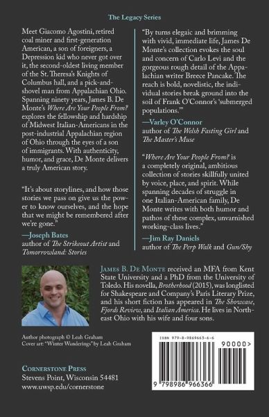 Meet Giacomo Agostini, retired coal miner and first-generation American, a son of foreigners, a Depression kid who never got over it, the second-oldest living member of the St. Theresa's Knights of Columbus hall, and a pick-and-shovel man from Appalachian Ohio. Spanning ninety years, James B. De Monte's Where Are Your People From? explores the fellowship and hardship of Midwest Italian-Americans in the post-industrial Appalachian region of Ohio through the eyes of a son of immigrants. With authenticity, humor, and grace, De Monte delivers a truly American story.