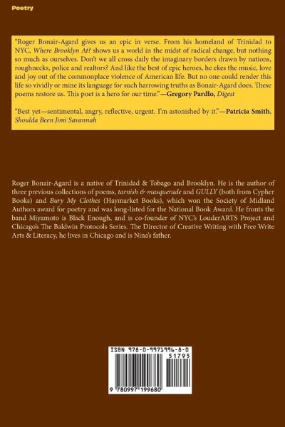 "Roger Bonair-Agard gives us an epic in verse. From his homeland of Trinidad to NYC, Where Brooklyn At?! shows us a world in the midst of radical change, but nothing so much as ourselves. Don't we all cross daily the imaginary borders drawn by nations, roughnecks, police and realtors? And like the best of epic heroes, he ekes the music, love and joy out of the commonplace violence of American life. But no one could render this life so vividly or mine its language for such harrowing truths as Bonair-Agard does. These poems restore us. This poet is a hero for our time."-Gregory Pardlo, Digest "Best yet-sentimental, angry, reflective, urgent. I'm astonished by it."-Patricia Smith, Shoulda Been Jimi Savannah