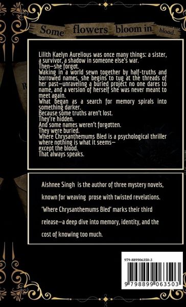 Lilith Kaelyn Aurelious remembers nothing from before-only the flowers. Chrysanthemums at every doorstep. At every kill. Her kill. Now, years later, as whispers of a forgotten past claw their way back, Lilith uncovers what they did to her. But memory has teeth. As truths unravel and names bleed into lies, Lilith finds herself facing the ones she once called family. Her brothers-one dead, one not. The girl who called herself a sister. The boy who watched her become myth. And the organization that puppeteered it all. When a single gunshot on Christmas Eve shatters everything she thought she knew, Lilith must decide: Is she still the dagger they forged? Or the serpent that strikes back? A psychological thriller tangled in betrayal, buried memories, and poetic vengeance-Where Chrysanthemums Bled is a story of rage dressed in velvet, of love that cuts, and of a girl who became the very monster they feared.