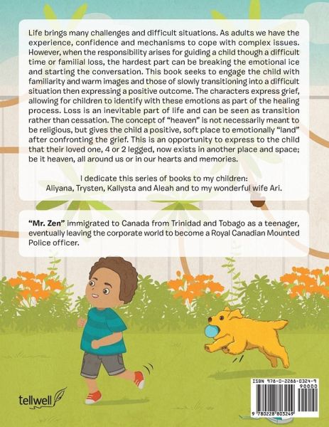 Life brings many challenges and difficult situations. As adults we have the experience, confidence and mechanisms to cope with complex issues. However, when the responsibility arises for guiding a child though a difficult time or familial loss, the hardest part can be breaking the emotional ice and starting the conversation. This book seeks to engage the child with familiarity and warm images and those of slowly transitioning into a difficult situation then expressing a positive outcome. The characters express grief, allowing for children to identify with these emotions as part of the healing process. Loss is an inevitable part of life and can be seen as transition rather than cessation. The concept of "heaven" is not necessarily meant to be religious, but gives the child a positive, soft place to emotionally "land" after confronting the grief. This is an opportunity to express to the child that their loved one, 4 or 2 legged, now exists in another place and space; be it heaven, all around us or in our hearts and memories.