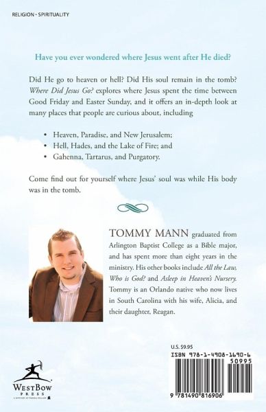 Have you ever wondered where Jesus went after He died? Did He go to heaven or hell? Did His soul remain in the tomb? Where Did Jesus Go? explores where Jesus spent the time between Good Friday and Easter Sunday, and it offers an in-depth look at many places that people are curious about, including ¿ Heaven, Paradise, and New Jerusalem; ¿ Hell, Hades, and the Lake of Fire; and ¿ Gahenna, Tartarus, and Purgatory. Come find out for yourself where Jesus' soul was while His body was in the tomb.