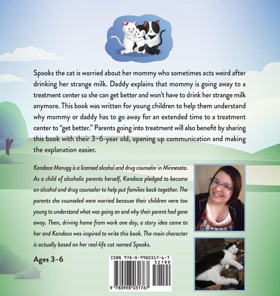 This book was written for young children to help them understand why mommy or daddy has to go away for an extended time to a treatment center to "get better." This can seem like a difficult conversation to have with a 3-6-year old. Children of this age may not understand why their parent is going away and can be confused and even frightened. In many cases, they may know on some level that there is something going on, and often a simple explanation will suffice, that mommy or daddy is going away for a while to get better and that they will return soon. Explaining to a child that they will be safe and taken care of while their parent is gone will help them feel confident in this new change in their life. In this book, Spook's mommy is going to a treatment center so she can get better and doesn't have to drink her strange milk anymore. Parents going into treatment will also benefit by sharing this book with their 3-6-year old, opening up communication and making the explanation easier.