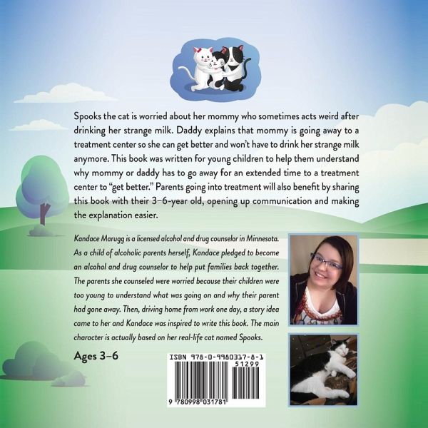 Kandace Marugg is a licensed alcohol and drug counselor in Minnesota. As a child of alcoholic parents, along with her little brother, she lost her father to a drug overdose and was taken away from her mother, who was also an addict. She grew up with her grandparents, but later lost her mother to a heroin overdose. Kandace pledged to become an alcohol and drug counselor to help put families back together. Kandace started her counseling journey in Washington State and worked at an intensive outpatient treatment facility for two and a half years. When her fiancé's job required them to relocate, they traveled to Minnesota and she began counseling men at inpatient facilities in Waverly and Elk River, but later found her counseling home at a residential facility for women in St. Paul. The women she counseled were worried because their children were too young to understand what was going on and why their parent had gone into treatment. Then, driving home from work one day, a story idea came to her and Kandace was inspired to write this book. The main character is actually based on her real-life cat named Spooks.