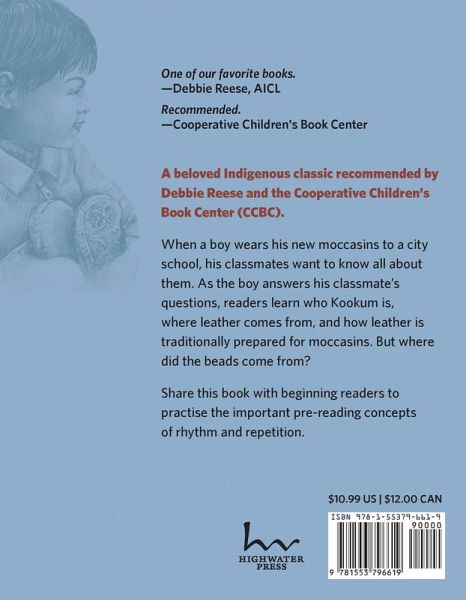 When a boy brings his moccasins to his city school, his classmates have many questions. As the boy answers his classmate's questions, readers learn who Kookum is, where leather comes from, and how leather is traditionally prepared for moccasins. But where did the beads come from? Share this book with beginning readers to practise the important pre-reading concepts of rhythm and repetition.