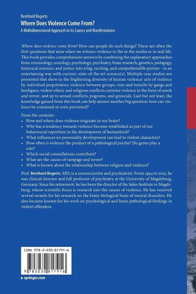 Where does violence come from? How can people do such things? These are often the first questions that arise when we witness violence in the in the media or in real life. This book provides comprehensive answers by combining the explanatory approaches from criminology, sociology, psychology, psychiatry, brain research, genetics, pedagogy, historical sciences, and justice into a big, exciting, and comprehensible picture - in an entertaining way with current, state-of-the art science(s). Multiple case studies are presented that show us the frightening diversity of human violence: acts of violence by individual perpetrators; violence between groups; riots and tumults by gangs and hooligans; violent ethnic and religious conflicts; extreme violence in the form of amok and terror; and up to armed conflicts, pogroms, and genocide. Last but not least, the knowledge gained from this book can help answer another big question: how can violence be contained or even prevented?