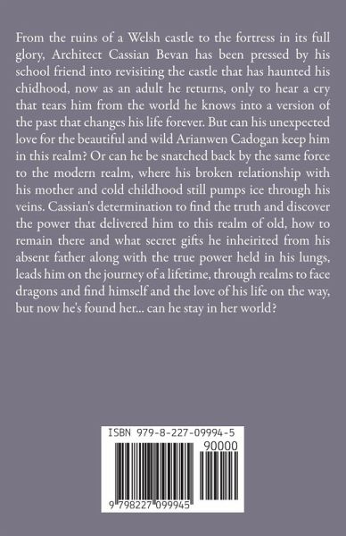From the ruins of a Welsh castle to the fortress in its full glory, Architect Cassian Bevan has been pressed by his school friend into revisiting the castle that has haunted his chidhood, now as an adult he returns, only to hear a cry that tears him from the world he knows into a version of the past that changes his life forever. But can his unexpected love for the beautiful and wild Arianwen Cadogan keep him in this realm? Or can he be snatched back by the same force to the modern realm, where his broken relationship with his mother and cold childhood still pumps ice through his veins. Cassian's determination to find the truth and discover the power that delivered him to this realm of old, how to remain there and what secret gifts he inheirited from his absent father along with the true power held in his lungs, leads him on the journey of a lifetime, through realms to face dragons and find himself and the love of his life on the way, but now he's found her... can he stay in her world?