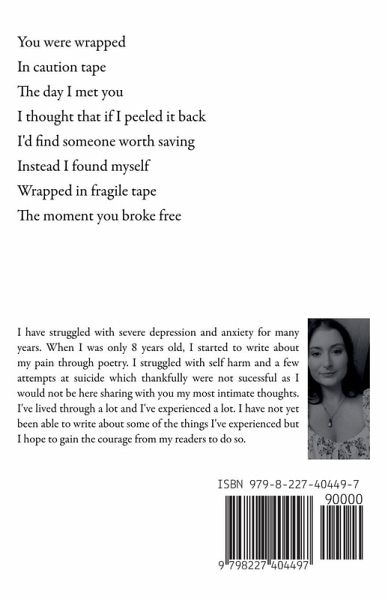I have struggled with severe depression and anxiety for many years. When I was only 8 years old, I started to write about my pain through poetry. I struggled with self harm and a few attempts at suicide which thankfully were not sucessful as I would not be here sharing with you my most intimate thoughts. I've lived through a lot and I've experienced a lot. I have not yet been able to write about some of the things I've experienced but I hope to gain the courage from my readers to do so.
