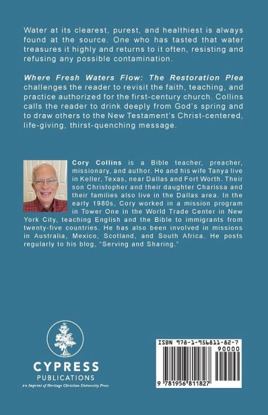 Water at its clearest, purest, and healthiest is always found at the source. One who has tasted that water treasures it highly and returns to it often, resisting and refusing any possible contamination. Where Fresh Waters Flow: the Restoration Plea challenges the reader to revisit the faith, teaching, and practice authorized for the first-century church. Collins calls the reader to drink deeply from God's spring and to draw others to the New Testament's Christ-centered, life-giving, thirst-quenching message.