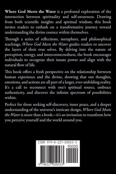 Where God Meets the Water is a profound exploration of the intersection between spirituality and self-awareness. Drawing from both scientific insights and spiritual wisdom, this book invites readers to embark on a transformative journey toward understanding the divine essence within themselves. Through a series of reflections, metaphors, and philosophical teachings, Where God Meets the Water guides readers to uncover the layers of their true selves. By delving into the nature of perception, energy, and interconnectedness, the book encourages individuals to recognize their innate power and align with the natural flow of life. This book offers a fresh perspective on the relationship between human experience and the divine, showing that our thoughts, emotions, and actions are all part of a larger, ever-unfolding reality. It's a call to reconnect with one's spiritual source, embrace authenticity, and discover the infinite spectrum of possibilities within. Perfect for those seeking self-discovery, inner peace, and a deeper understanding of the universe's intricate design, Where God Meets the Water is more than a book-it's an invitation to transform how you perceive yourself and the world around you.
